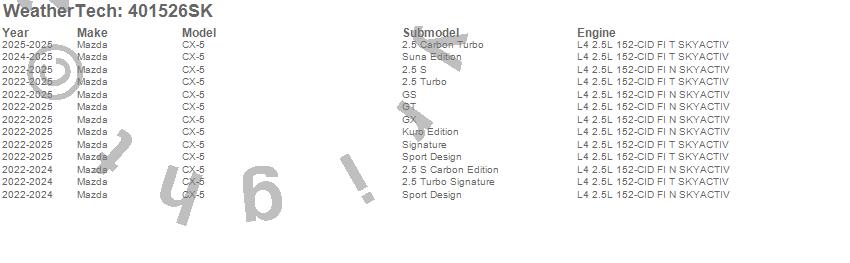 Below is an abbreviated list of applications for the Cargo Liner w/Bumper Protector.CX-5, Mazda, 2025, 2024, 2023, 2022