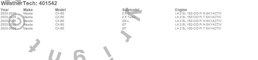 Below is an abbreviated list of applications for the Cargo Liner.CX-50, Mazda, 2025, 2024, 2023