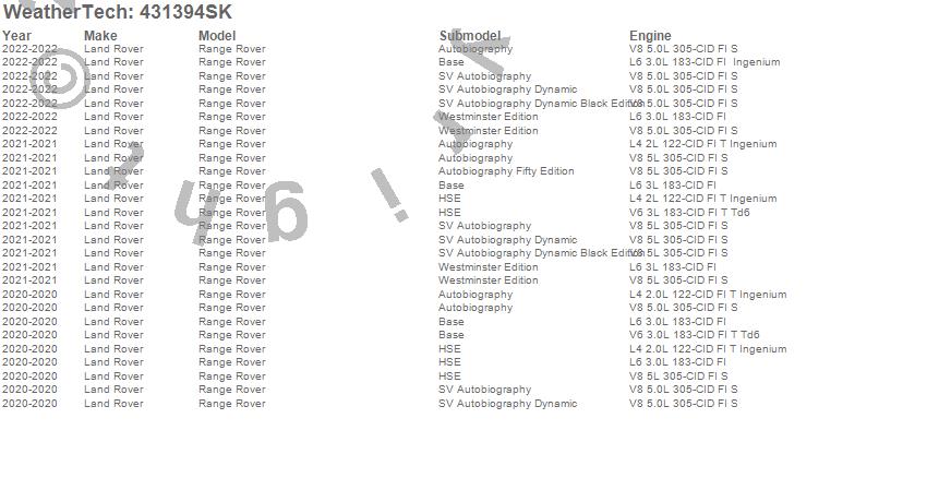 Below is an abbreviated list of applications for the Cargo Liner w/Bumper Protector.Range Rover, Land Rover, 2022, 2021, 2020