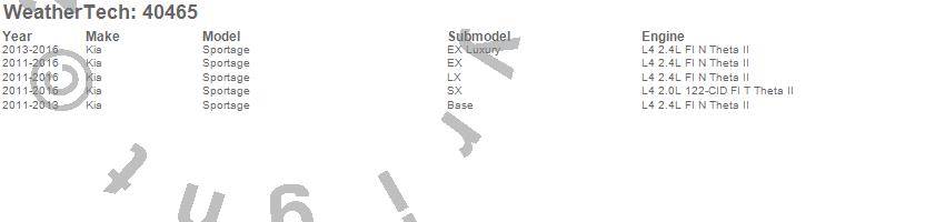 Below is an abbreviated list of applications for the Cargo Liner.Sportage, Kia, 2016, 2015, 2014, 2013, 2012, 2011