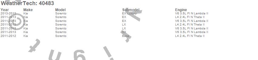 Below is an abbreviated list of applications for the Cargo Liner.Sorento, Kia, 2013, 2012, 2011