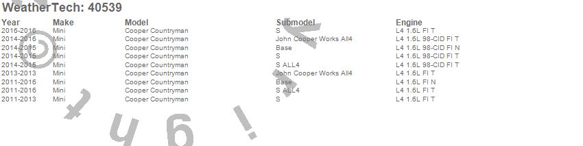 Below is an abbreviated list of applications for the Cargo Liner.Cooper Countryman, Mini, 2016, 2015, 2014, 2013, 2012, 2011