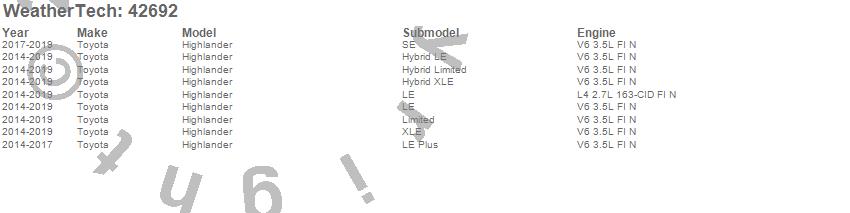 Below is an abbreviated list of applications for the Cargo Liner.Highlander, Toyota, 2019, 2018, 2017, 2016, 2015, 2014