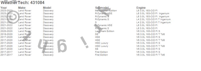 Below is an abbreviated list of applications for the Cargo Liner.Discovery, Land Rover, 2025, 2024, 2023, 2022, 2021, 2020, 2019, 2018, 2017