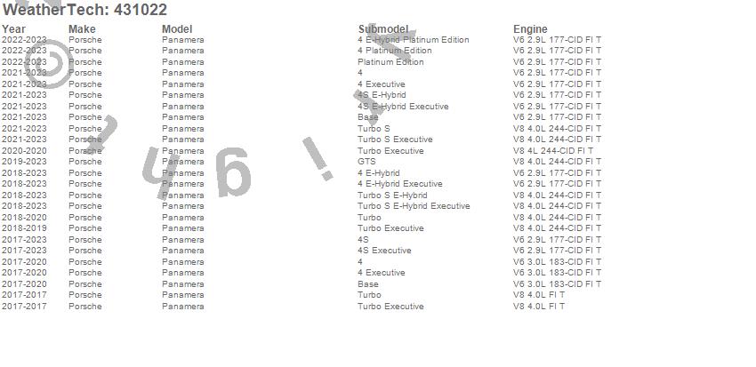 Below is an abbreviated list of applications for the Cargo Liner.Panamera, Porsche, 2023, 2022, 2021, 2020, 2019, 2018, 2017