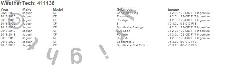 Below is an abbreviated list of applications for the Cargo Liner.XF, Jaguar, 2020, 2019, 2018