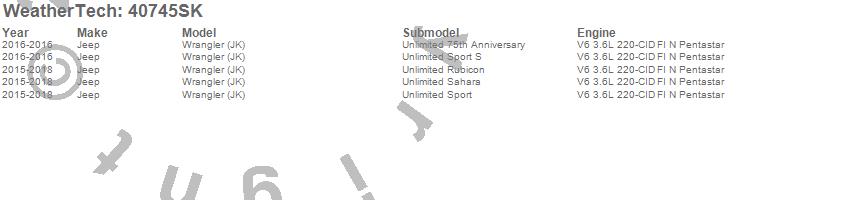 Below is an abbreviated list of applications for the Cargo Liner w/Bumper Protector.Wrangler (JK), Jeep, 2018, 2017, 2016, 2015