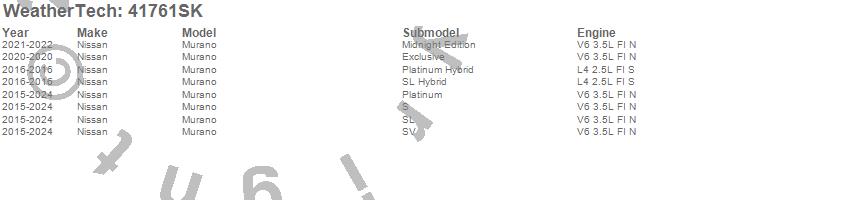 Below is an abbreviated list of applications for the Cargo Liner w/Bumper Protector.Murano, Nissan, 2024, 2023, 2022, 2021, 2020, 2019, 2018, 2017, 2016, 2015