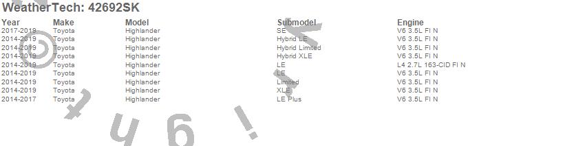 Below is an abbreviated list of applications for the Cargo Liner w/Bumper Protector.Highlander, Toyota, 2019, 2018, 2017, 2016, 2015, 2014