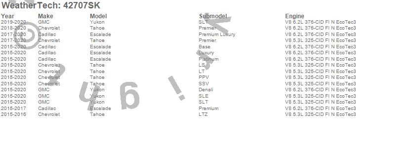 Below is an abbreviated list of applications for the Cargo Liner w/Bumper Protector.Escalade, Tahoe, Yukon, Cadillac, Chevrolet, GMC, 2020, 2019, 2018, 2017, 2016, 2015
