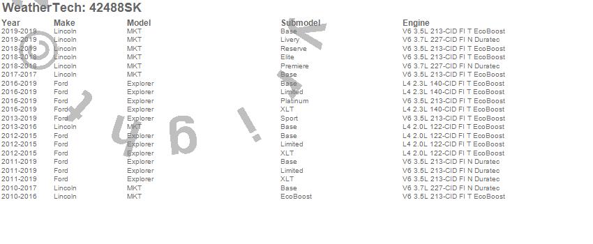 Below is an abbreviated list of applications for the Cargo Liner w/Bumper Protector.Explorer, MKT, Ford, Lincoln, 2019, 2018, 2017, 2016, 2015, 2014, 2013, 2012, 2011, 2010