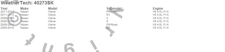 Below is an abbreviated list of applications for the Cargo Liner w/Bumper Protector.Xterra, Nissan, 2015, 2014, 2013, 2012, 2011, 2010, 2009, 2008, 2007, 2006, 2005