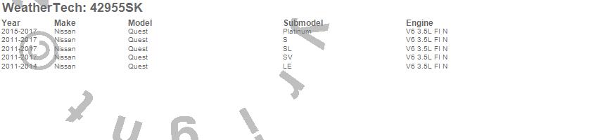 Below is an abbreviated list of applications for the Cargo Liner w/Bumper Protector.Quest, Nissan, 2017, 2016, 2015, 2014, 2013, 2012, 2011