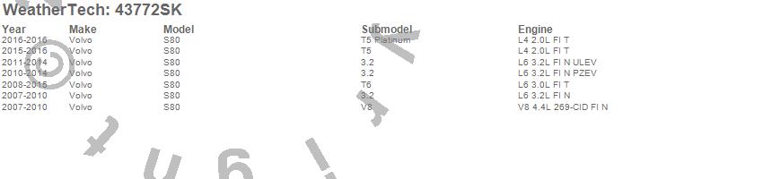 Below is an abbreviated list of applications for the Cargo Liner w/Bumper Protector.S80, Volvo, 2016, 2015, 2014, 2013, 2012, 2011, 2010, 2009, 2008, 2007