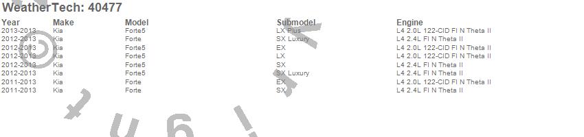 Below is an abbreviated list of applications for the Cargo Liner.Forte, Forte5, Kia, 2013, 2012, 2011