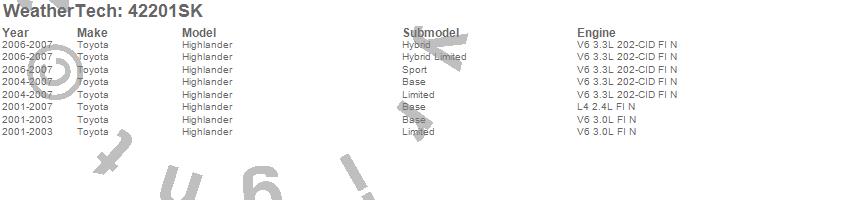 Below is an abbreviated list of applications for the Cargo Liner w/Bumper Protector.Highlander, Toyota, 2007, 2006, 2005, 2004, 2003, 2002, 2001