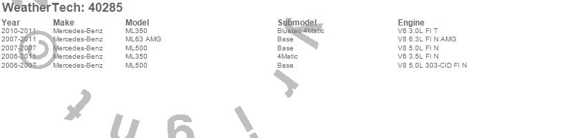 Below is an abbreviated list of applications for the Cargo Liner.ML350, ML500, ML63 AMG, Mercedes-Benz, 2011, 2010, 2009, 2008, 2007, 2006