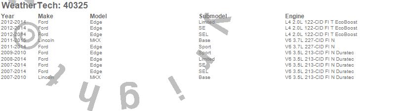 Below is an abbreviated list of applications for the Cargo Liner.Edge, MKX, Ford, Lincoln, 2015, 2014, 2013, 2012, 2011, 2010, 2009, 2008, 2007