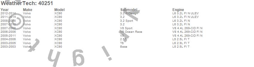 Below is an abbreviated list of applications for the Cargo Liner.XC90, Volvo, 2014, 2013, 2012, 2011, 2010, 2009, 2008, 2007, 2006, 2005, 2004, 2003