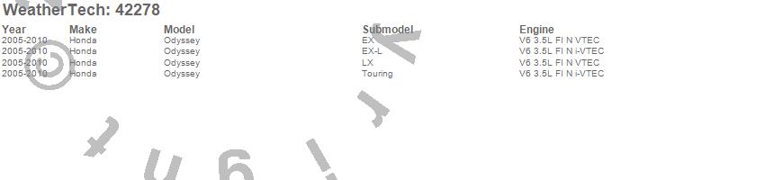 Below is an abbreviated list of applications for the Cargo Liner.Odyssey, Honda, 2010, 2009, 2008, 2007, 2006, 2005