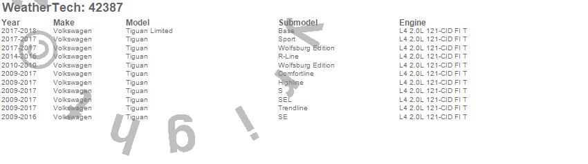 Below is an abbreviated list of applications for the Cargo Liner.Tiguan, Tiguan Limited, Volkswagen, 2018, 2017, 2016, 2015, 2014, 2013, 2012, 2011, 2010, 2009