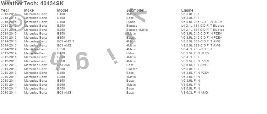 Below is an abbreviated list of applications for the Cargo Liner w/Bumper Protector.E250, E350, E400, E550, E63 AMG, E63 AMG S, Mercedes-Benz, 2016, 2015, 2014, 2013, 2012, 2011, 2010