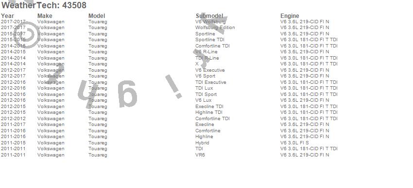 Below is an abbreviated list of applications for the Cargo Liner.Touareg, Volkswagen, 2017, 2016, 2015, 2014, 2013, 2012, 2011