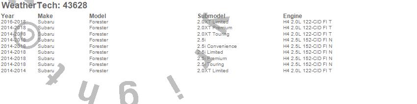 Below is an abbreviated list of applications for the Cargo Liner.Forester, Subaru, 2018, 2017, 2016, 2015, 2014