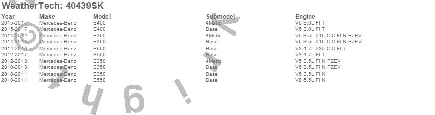 Below is an abbreviated list of applications for the Cargo Liner w/Bumper Protector.E350, E400, E550, Mercedes-Benz, 2017, 2016, 2015, 2014, 2013, 2012, 2011, 2010