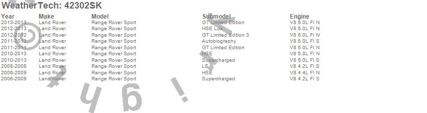 Below is an abbreviated list of applications for the Cargo Liner w/Bumper Protector.Range Rover Sport, Land Rover, 2013, 2012, 2011, 2010, 2009, 2008, 2007, 2006