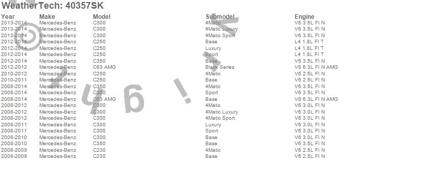 Below is an abbreviated list of applications for the Cargo Liner w/Bumper Protector.C230, C250, C300, C350, C63 AMG, Mercedes-Benz, 2014, 2013, 2012, 2011, 2010, 2009, 2008
