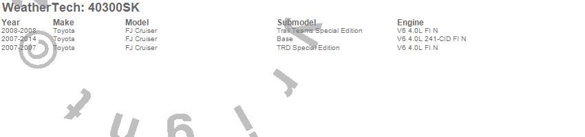 Below is an abbreviated list of applications for the Cargo Liner w/Bumper Protector.FJ Cruiser, Toyota, 2014, 2013, 2012, 2011, 2010, 2009, 2008, 2007