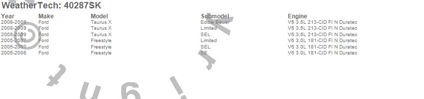 Below is an abbreviated list of applications for the Cargo Liner w/Bumper Protector.Freestyle, Taurus X, Ford, 2009, 2008, 2007, 2006, 2005