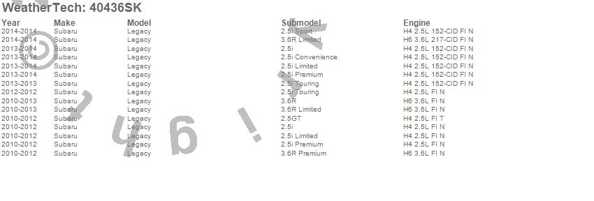 Below is an abbreviated list of applications for the Cargo Liner w/Bumper Protector.Legacy, Subaru, 2014, 2013, 2012, 2011, 2010