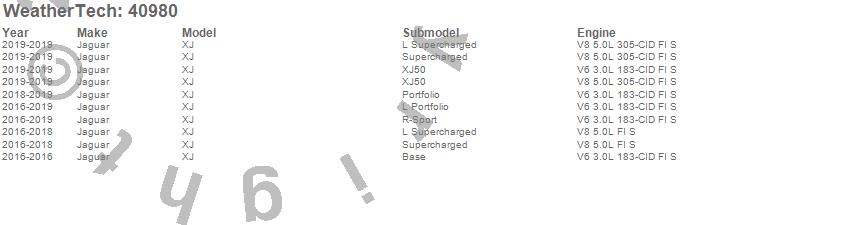 Below is an abbreviated list of applications for the Cargo Liner.XJ, Jaguar, 2019, 2018, 2017, 2016