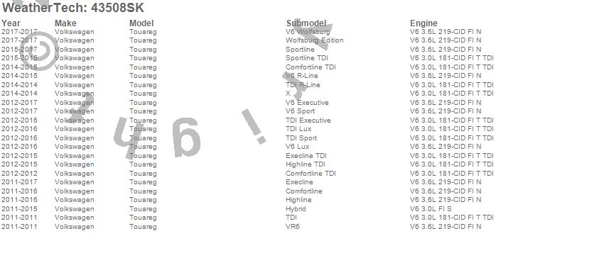 Below is an abbreviated list of applications for the Cargo Liner w/Bumper Protector.Touareg, Volkswagen, 2017, 2016, 2015, 2014, 2013, 2012, 2011