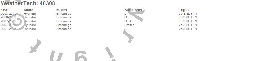 Below is an abbreviated list of applications for the Cargo Liner.Entourage, Hyundai, 2010, 2009, 2008, 2007