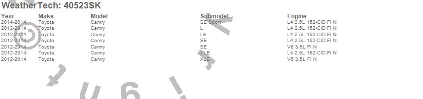 Below is an abbreviated list of applications for the Cargo Liner w/Bumper Protector.Camry, Toyota, 2014, 2013, 2012