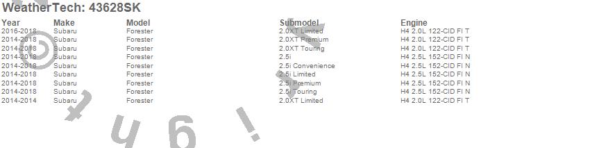 Below is an abbreviated list of applications for the Cargo Liner w/Bumper Protector.Forester, Subaru, 2018, 2017, 2016, 2015, 2014