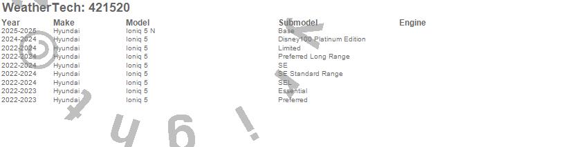 Below is an abbreviated list of applications for the Cargo Liner.Ioniq 5, Ioniq 5 N, Hyundai, 2025, 2024, 2023, 2022