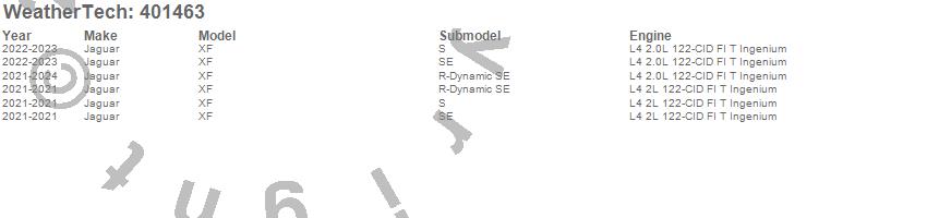 Below is an abbreviated list of applications for the Cargo Liner.XF, Jaguar, 2024, 2023, 2022, 2021