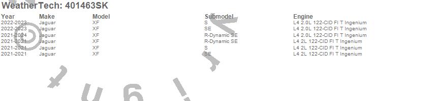 Below is an abbreviated list of applications for the Cargo Liner w/Bumper Protector.XF, Jaguar, 2024, 2023, 2022, 2021