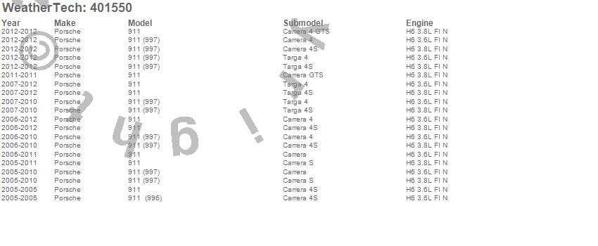Below is an abbreviated list of applications for the Cargo Liner.911, Porsche, 2012, 2011, 2010, 2009, 2008, 2007, 2006, 2005