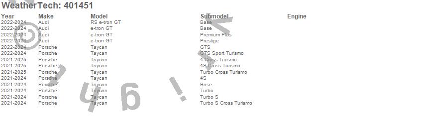 Below is an abbreviated list of applications for the Cargo Liner.e-tron GT, RS e-tron GT, S e-tron GT, Taycan, Audi, Porsche, 2025, 2024, 2023, 2022, 2021