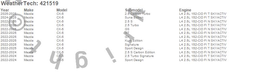 Below is an abbreviated list of applications for the Cargo Liner.CX-5, Mazda, 2025, 2024, 2023, 2022