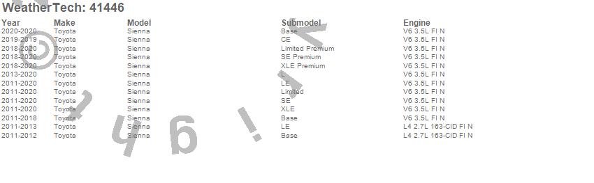 Below is an abbreviated list of applications for the Cargo Liner.Sienna, Toyota, 2020, 2019, 2018, 2017, 2016, 2015, 2014, 2013, 2012, 2011