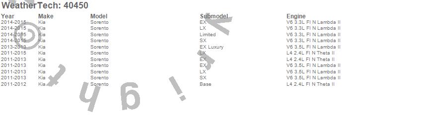 Below is an abbreviated list of applications for the Cargo Liner.Sorento, Kia, 2015, 2014, 2013, 2012, 2011