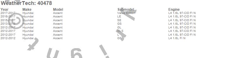 Below is an abbreviated list of applications for the Cargo Liner.Accent, Hyundai, 2017, 2016, 2015, 2014, 2013, 2012