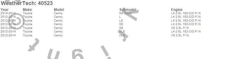 Below is an abbreviated list of applications for the Cargo Liner.Camry, Toyota, 2014, 2013, 2012