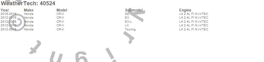 Below is an abbreviated list of applications for the Cargo Liner.CR-V, Honda, 2016, 2015, 2014, 2013, 2012